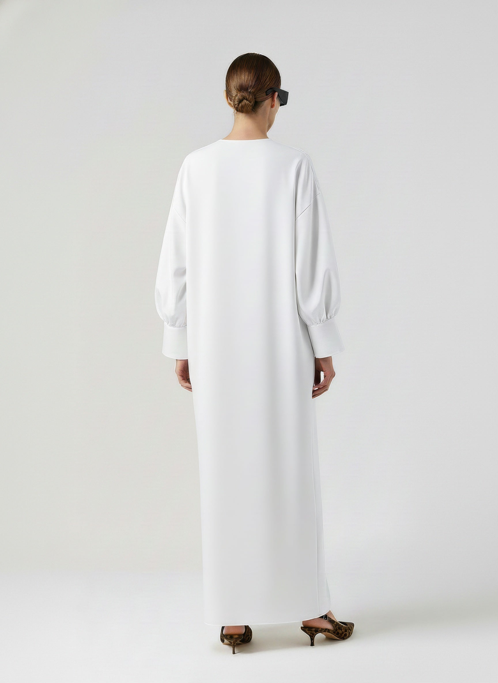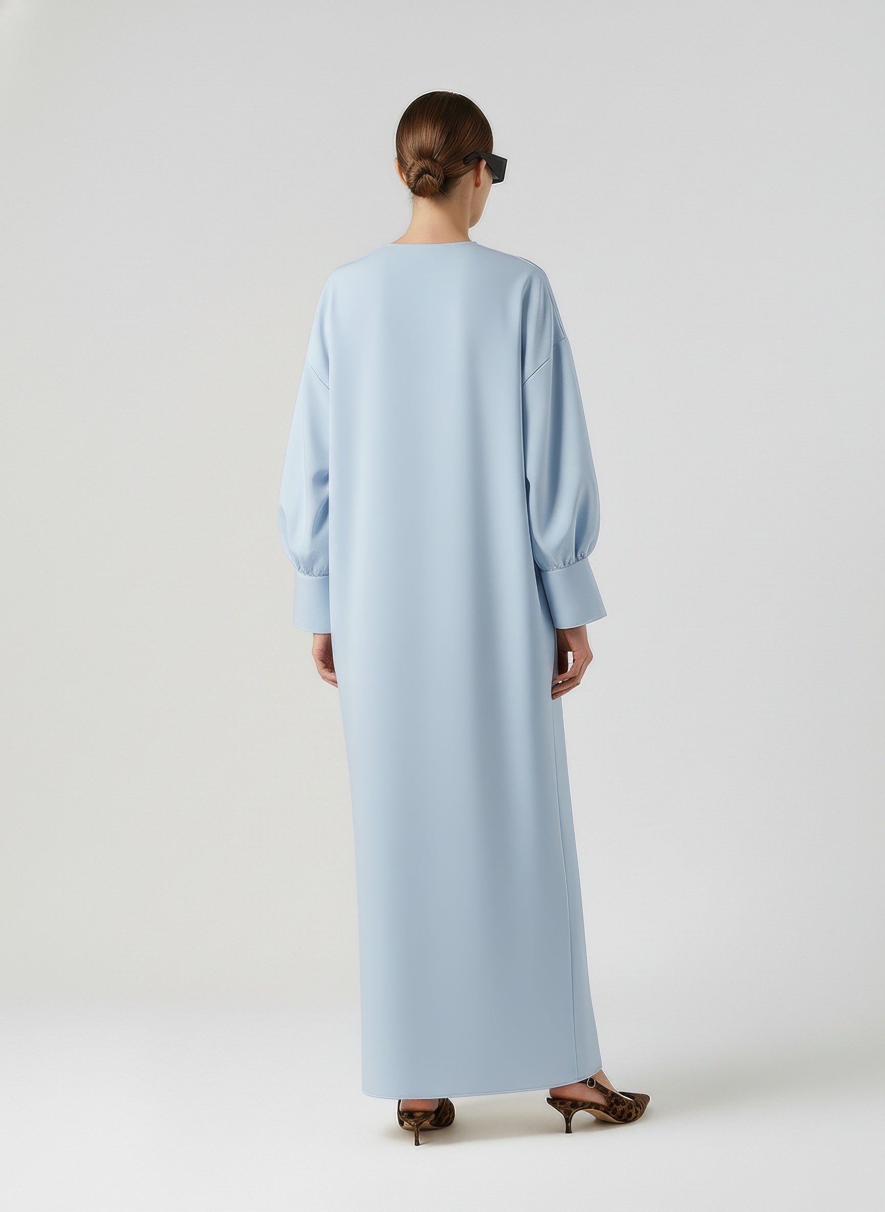 - Voluminous long sleeves with wide cuffs